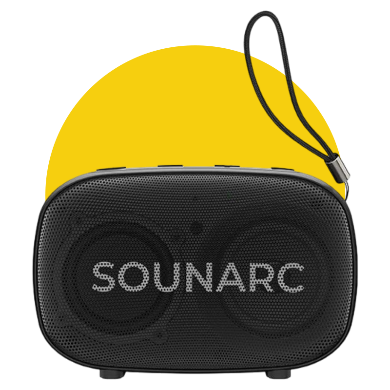 The Sounarc P1 speaker has a full-range driver and a powerful passive radiator, providing immersive sound. It gives 12 hours of playtime on a single charge and has BT V5.3 for instant connectivity or switch between an SD card slot, a USB-A Port, or a direct auxiliary cable connection.